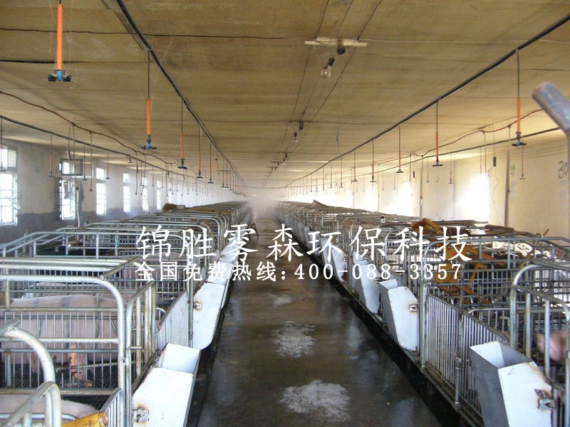 c、飼舍內的灰塵主要損傷動物肺表面,易造成呼吸道疾病,增加對疾病的易感性,噴霧降溫系統的霧離子直徑在1~10微米之間,因此能長期懸浮與空氣中,而當空氣中的灰塵在空氣中吸收濕氣(細微霧離子),就會在自重增加的情況下達到迫降的目的。