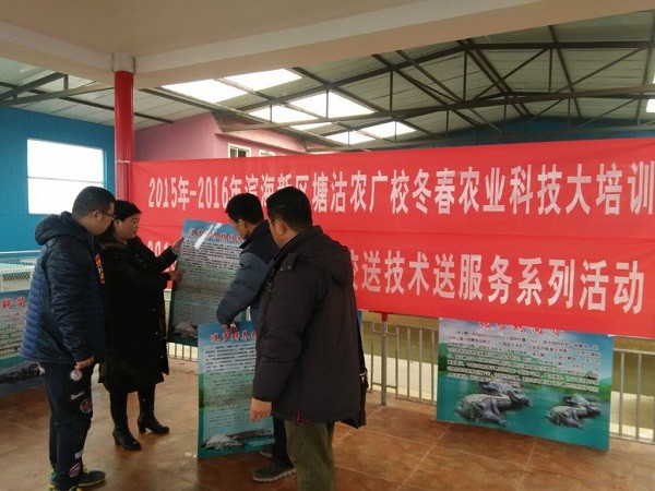 12月24日,塘沽農廣校與水產技術站專業技術人員共同組織到綠地蘭天農業生態有限公司開展送技術送服務系列活動,針對從國家批準的山東唯一一家具有野生動物馴養繁殖許可的鄆城鱷魚潭養殖廠引進的暹羅鱷,認真研究分析如何讓鱷魚安全度過冬季。塘沽農廣校及時整理了暹羅鱷養殖技術要點制作了展牌送到了養殖現場供員工學習。