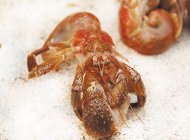寄居蟹分頭胸部及腹部。頭胸部具頭胸甲,但不覆蓋最后胸節(jié)。頭胸部前部較狹窄,鈣化較強(qiáng),后部擴(kuò)展較寬,角質(zhì)或完全膜質(zhì),有明顯的頸溝。腹部長(zhǎng),曲卷或直伸,少數(shù)種寬短,多不對(duì)稱(chēng)。全世界已知近1000種,中國(guó)約100種。多數(shù)為暖水種,黃海有少數(shù)冷水種。而在大連地區(qū),主要在長(zhǎng)海縣獐子島、海洋島及周邊海域出產(chǎn)寄居蟹,寄居蟹一般采用底掛網(wǎng)或釣籠采捕。