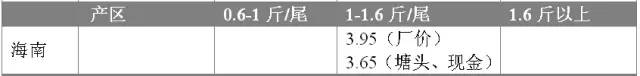 海南1斤以上規格魚現金價3.6-3.7元/斤,工廠價3.9-4.0元/斤,環比基本持平。當前產區存塘魚多在半斤和八兩左右規格,一斤以上規格魚不多,陸續有少量成魚出塘,加工廠訂單少,業內人士預測近期海南魚價或穩中略升。